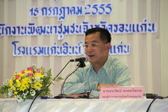 เมื่อวันที่ 18 กรกฎาคม 2555 เวลา 09.00 น. นายธนวัฒน์ พลอยโสภณ รองผู้ว่าราชการจังหวัดขอนแก่น เป็นประธานเปิดการประชุมเชิงปฏิบัติการสร้างวิทยากรกระบวนการจัดการการเรียนรู้ของชุมชน ตามโครงการ "บำบัดทุกข์ บำรุงสุข แบบABC บัญชีครัวเรือนพลิกชุมชนสู่สังคมอยู่เย็นเป็นสุข"(ครู ก) จัดโดย สำนักงานพัฒนาชุมชนจังหวัดขอนแก่น โดยโครงการ"บำบัดทุกข์ บำรุงสุข แบบABC (Area Based Collaborative Research) จัดทำขึ้นเพื่อแก้ปัญหาความยากจนและพัฒนาความเป็นอยู่ของประชาชนในพื้นที่ โดยการจัดทำบัญชีครัวเรือน เพื่อให้มีความรู้ความเข้าใจเรื่องบัญชีรับ-จ่ายครัวเรือน มีความสามารถในการส่งเสริมให้ครัวเรือนในชุมชนใช้บัญชีรับ-จ่ายครัวเรือน และข้อมูลสารสนเทศการในการวิเคราะห์ และจัดทำ/ปรับปรุง แผนเพื่อแก้ไขปัญหาและพัฒนาตนเอง ครอบครัว ชุมชน และตำบลได้ มีผู้ร่วมประชุมประกอบด้วย เจ้าหน้าที่องค์กรปกครองส่วนท้องถิ่น เจ้าหน้าที่พัฒนาชุมชน และเจ้าหน้าที่โครงการ รวม 94 คน ณ โรงแรมแก่นอินน์ ขอนแก่น