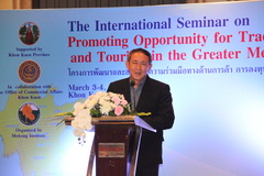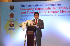 เมื่อวันที่ 4 มีนาคม 2559 เวลา 09.30 น. นายศิวาโรจน์ มุ่งหมายผล รองผู้ว่าราชการจังหวัดขอนแก่น เป็นประธานพิธีเปิดการประชุมสัมมนาวิชาการระดับนานาชาติ เรื่อง "ศักยภาพและโอกาสการทำการค้า การลงทุน และการท่องเที่ยว ในกลุ่มอนุภูมิภาคลุ่มน้ำโขง (GMS)" The International Seminar on Promoting Opportunity for Trade, Investment and Tourism in the Greater Mekong Subregion (GMS) โครงการพัฒนาและส่งเสริมความร่วมมือทางด้านการค้า การลงทุน ขอนแก่นสู่ AEC ในกลุ่มอนุภูมิภาคลุ่มน้ำโขง จัดโดย จังหวัดขอนแก่น ร่วมกับสภาบันความร่วมมือเพื่อพัฒนาเศรษฐกิจลุ่มน้ำโขง (Mekong Institute) และสำนักงานพาณิชย์จังหวัดขอนแก่น โดยมีนายสิทธิพร บางแก้ว พาณิชย์จังหวัดขอนแก่น กล่าวรายงานวัตถุประสงค์เพื่อ ส่งเสริมการค้า การลงทุน ของผู้ประกอบการขนาดกลางและขนาดย่อม ในอนุภูมิภาคลุ่มน้ำโขง เพิ่มศักยภาพในการแข่งขัน และแสวงหาโอกาสเพื่อเข้าสู่ตลาดโลก สร้างเครือข่ายธุรกิจ และความร่วมมือทางธุรกิจระยะยาว ส่งเสริมพัฒนาด้านเทคโนโลยีระหว่างผู้ประกอบการขนาดกลางและขนาดย่อม โดยมีผู้เข้าร่วมสัมมนาจากผู้ประกอบการ SMEs ผู้ประกอบการ OTOP นักธุรกิจ นักลงทุน จำนวนกว่า 200 คน ณ โรงแรมเซนทารา ขอนแก่น