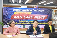 เมื่อวันที่ 29 เมษายน 2567 ณ หม่องเฮียนฮู้ ธนาคารแห่งประเทศไทย สำนักงานภาคตะวันออกเฉียงเหนือ นายไกรสร กองฉลาด ผู้ว่าราชการจังหวัดขอนแก่น เป็นประธานเปิดงานเสวนา สานพลังต่อต้านข่าวลวง พร้อมเปิดศูนย์ต่อต้านข่าวลวงจังหวัดขอนแก่น (Khonkaen Anti Fake News ) โดยมีเครือข่ายหยุดข่าวลวง ทวงความจริง หรือ อีสานโคแฟค (Esan Cofact) และโคแฟคไทยแลนด์ (Cofact Thailand) เป็นผู้ดำเนินการร่วมกับสมาคมสื่อมวลชนจังหวัดขอนแก่น สมาคมหมอลำจังหวัดขอนแก่น สมาคมผู้บริโภค สภาองค์กรผู้บริโภค ขอนแก่นว้อยท์ สำนักเครือข่ายละการมีส่วนร่วมสาธารณะสถานีโทรทัศน์ไทยพีบีเอส ธนาคารแห่งประเทศไทย สำนักงานภาคตะวันออกเฉียงเหนือ ฯลฯ โดยได้รับการสนับสนุนงบประมาณจาก สำนักงานกองทุนสนับสนุนการสร้างเสริมสุขภาพ (สสส.)