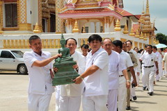 เมื่อวันที่ 29 พฤษภาคม 2555 เวลา 13.19 น. นายสมบัติ ตรีวัฒน์สุวรรณ ผู้ว่าราชการจังหวัดขอนแก่น เป็นประธานอันเชิญพระบรมสารีริกธาตุ พร้อมอัญเชิญองค์พระลับ พระคู่บ้านคู่เมืองขอนแก่น ออกจากพระอุโบสถ วัดธาตุพระอารามหลวง เพื่อไปประดิษฐานเป็นการชั่วคราว ณ มณฑลพิธีหน้าศาลากลางจังหวัดขอนแก่น ในสัปดาห์ส่งเสริมพระพุทธศาสนา เนื่องในวันวิสาขบูชา วันสำคัญสากลโลก ประจำปี 2555 งานฉลองพุทธชยันตี 2,600 ปี แห่งการตรัสรู้ของพระพุทธเจ้า ระหว่างวันที่ 29 พฤษภาคม - 4 มิถุนายน 2555 และในเวลา 15.30 น. ผู้ว่าราชการจังหวัดขอนแก่นประธานในพิธีอัญเชิญพระบรมสารีริกธาตุ และอันเชิญพระลับขึ้นประดิษฐานบนบุษบก นายพยัต ชาญประเสริฐ รองผู้ว่าราชการจังหวัดขอนแก่น กล่าวรายงาน ประธานมอบเกียรติบัตรแก่บุคคลที่ทำคุณประโยชน์ด้านพระพุทธศาสนา และผู้ที่สนับสนุนการจัดงาน ประธานกล่าวเปิดงานและเยี่ยมชมนิทรรศการ ประสูติ ตรัสรู้ ปฐมเทศนา และปรินิพพาน เป็นเสร็จพิธี