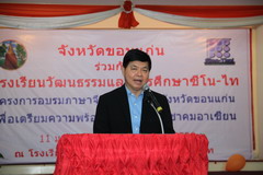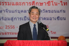 เมื่อวันที่ 11 มกราคม 2556 เวลา 13.30 น. นายสมศักดิ์ สุวรรณสุจริต ผู้ว่าราชการจังหวัดขอนแก่น เป็นประธานเปิด โครงการฝึกอบรมภาษาจีนแก่บุคลากรจังหวัดขอนแก่น เพื่อเตรียมความพร้อมเข้าสู่การเป็นประชาคมอาเซียน โดยจังหวัดขอนแก่น ร่วมกับ โรงเรียนวัฒนธรรมและการศึกษาชีโน-ไท โดยผู้อำนวยการโรงเรียนวัฒนธรรมและการศึกษาชีโน-ไท กล่าวรายงาน และกงสุลใหญ่สาธารณรัฐประชาชนจีนประจำจังหวัดขอนแก่น กล่าวแสดงความยินดี และให้คำแนะนำแก่ผู้เข้าอบรม จากนั้นผู้ว่าราชการจังหวัดขอนแก่น ได้กล่าวเปิดการฝึกอบรม และร่วมเข้ารับการอบรมด้วย โดยโครงการอบรมภาษาจีนนี้ มีวัตถุประสงค์เพื่อพัฒนาความรู้ความสามารถด้านภาษาจีนให้กับบุคลากรของส่วนราชการและหน่วยงานภาคเอกชน ให้มีความรู้และทักษะภาษาจีน สามารถฟัง พูด อ่าน และเขียนภาษาจีนได้ในระดับพื้นฐาน มีผู้อบรมประกอบด้วยบุคลากรจากภาครัฐและภาคเอกชน จำนวน 32 คน อบรมระหว่างวันที่ 11 มกราคม - 15 มีนาคม 2556 ณ โรงเรียนวัฒนธรรมและการศึกษาชีโน-ไท ชั้น 3 อาคารตลาดบางลำภู จังหวัดขอนแก่น