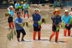 เมื่อวันที่ 13 สิงหาคม 2556 เวลา 11.00 น. นายสมศักดิ์ สุวรรณสุจริต ผู้ว่าราชการจังหวัดขอนแก่น เดินทางไปเป็นประธานพิธีการโยนต้นกล้าโครงการ 1 ไร่ 1 แสน โดยมีนายสมิง ยิ้มศิริ ประธานหอการค้าจังหวัดขอนแก่น กล่าวรายงานโดยมีเป้าประสงค์สำคัญเพื่อสร้างต้นแบบการทดลองการปฏิบัติในพื้นที่จริง จากกลุ่มเครือข่ายผู้นำทางการเกษตร ที่ประสบผลสำเร็จ ให้เป็นผู้ถ่ายทอดประสบการณ์ในการใช้พื้นที่ให้เกิดประโยชน์สูงสุด โดยใช้กระบวนการทำการเกษตรแบบผสมผสาน สามารถสร้างต้นแบบและองค์ความรู้ให้กับเกษตรกรในชนบท ได้นำไปทดลองปฏิบัติ ซึ่งจะยกฐานะความเป็นอยู่ของเกษตรกรให้ดีขึ้น การดำเนินโครงการประกอบด้วยภาคีร่วม 4 ส่วนคือ หอการค้าไทย หอการค้าจังหวัด มหาวิทยาลัยหอการค้าไทย และจังหวัดนำร่องดำเนินโครงการ 1 ไร่ 1 แสน ได้แก่ จังหวัดขอนแก่น จากนั้นผู้ว่าราชการจังหวัดได้กล่าวเปิดโครงการฯ และร่วมลงนาสาธิตการโยนต้นกล้ากับหอการค้าไทย หอการค้าจังหวัด ตลอดจนแขกผู้มีเกียรติและกลุ่มเกษตรกรผู้ร่วมงานในพื้นที่นาสาธิตของ ส.ต.อ. สมัย สายอ่อนตา บ้านหนองแต้ ตำบลบ้านดง อำเภออุบลรัตน์ จังหวัดขอนแก่น