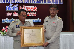 เมื่อวันที่ 26 กันยายน 2556 เวลา 10.00 น. ณ ห้องประชุมพระธาตุขามแก่น ศาลากลางจังหวัดขอนแก่น นายทรงพล จำปาพันธุ์ รองผู้ว่าราชการจังหวัดขอนแก่น รักษาราชการแทนผู้ว่าราชการจังหวัดขอนแก่น เป็นประธานการประชุมหัวหน้าส่วนราชการจังหวัดขอนแก่นครั้งที่ 9/2556 ก่อนเปิดการประชุมเป็นพิธีมอบประกาศเกียรติคุณให้แก่ข้าราชการผู้เกษียณอายุราชการในสังกัดสำนักงานปลัดกระทรวงมหาดไทย จำนวน 1 ราย ในสังกัดกรมการปกครองจำนวน 3 ราย และมอบเกียรติบัตรแก่องค์กรปกครองส่วนท้องถิ่นต้นแบบด้านการป้องกันการทุจริต จำนวน 1 ราย และการแนะนำหัวหน้าส่วนราชการจังหวัดเพิ่มเติม 1 ราย จากนั้นเป็นการอำลาของข้าราชการที่เกษียณอายุราชการระดับหัวหน้าส่วนราชการในจังหวัดขอนแก่น จำนวน 13 ราย เริ่มเปิดการประชุมเรื่องพิจารณา เรื่องการดำเนินโครงการ "จังหวัดขอนแก่นไม่ยุ่งเกี่ยวยาเสพติด" เรื่องการเตรียมความพร้อมยกระดับงานเทศกาลไหมนานาชาติ และประเพณีผูกเสี่ยว และงานกาชาดจังหวัดขอนแก่น และมีประเด็นที่สำคัญเพื่อทราบคือ ขอเชิญร่วมงานพิธี "วันปิยมหาราช " ประจำปี 2556 เรื่องขอเชิญร่วมงานพิธีถวายผ้าพระกฐินพระราชทานของกระทรวงมหาดไทย เรื่อง เข็มที่ระลึกงานฉลองพระชันษา 100 ปี สมเด็จพระญาณสังวร สมเด็จพระสัฆราช สกลมหาสังฆปรินายก เรื่องการพัฒนาระบบจัดเก็บข้อมูลจังหวัด "คลังข้อมูลขอนแก่น" การจัดตั้งศูนย์ประสานงานเข้าสู่ประชาคมอาเซียนจงหวัดขอนแก่น และการสถาปนาความสัมพันธ์เมืองพี่เมืองน้องระหว่างจังหวัดในกลุ่มจังหวัดภาคตะวันออกเฉียงเหนือตอนกลางกับมณฑลฝูเจี้ยน