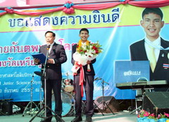 ผู้ว่าราชการจังหวัดขอนแก่น แสดงความยินดีกับนักเรียนของโรงเรียนขอนแก่นวิทยายนที่ได้เหรียญทอง วิทยาศาสตร์โอลิมปิค