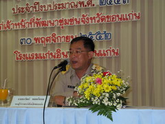 เมื่อวันที่ 30 พฤศจิกายน 2552 เวลา 09.30 น. นายธนวัฒน์ พลอยโสภณ รองผู้ว่าราชการจังหวัดขอนแก่น เป็นประธานพิธีเปิดการประชุมมอบนโยบายกรมพัฒนาชุมชน ประจำปีงบประมาณ พ.ศ.2552 แก่เจ้าหน้าที่พัฒนาชุมชนจังหวัด พัฒนาชุมชนอำเภอและพัฒนาการในจังหวัดขอนแก่น โดยมีนางเพ็ญสุภา ศิริสวัสดิ์ พัฒนาชุมชนจังหวัดขอนแก่น กล่าวรายงานการประชุม มีผู้เข้าร่วมประชุมมอบนโยบายจำนวน 175 คน ณ โรงแรมแก่นอินทร์ จังหวัดขอนแก่น