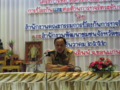 เมื่อวันที่ 8 ธันวาคม 2552 เวลา 10.00 น. นายพยัต ชาญประเสริฐ รองผู้ว่าราชการจังหวัดขอนแก่น เป็นประธานพิธีกล่าวเปิดงานเสวนาโครงการขยายเครือข่ายแกนนำ ป.ป.ช. การป้องกันและต่อต้านการทุจริตระดับอำเภอ โดยสำนักงานคณะกรรมการป้องกันการทุจริตแห่งชาติ และสำนักงานพัฒนาชุมชนจังหวัดขอนแก่น นายประจักษ์ จอมทรักษ์ หัวหน้ากลุ่มงานส่งเสริมการพัฒนาชุมชน กล่าวรายงาน นายพิษณุ ศิริแสง ตัวแทนเครือข่ายแกนนำ ป.ป.ช.จากทุกอำเภอ นำกล่าวประกาศเจตนารมย์ "ล้างทุจริตให้สิ้นแผ่นดินไทย เพื่อเทิดไท้องค์ราชัน " ณ โรงแรมแก่นอินทร์ จังหวัดขอนแก่น