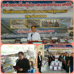 เมื่อวันที่ 24 มกราคม 2560 เวลา 17.00 น. นายพงษ์ศักดิ์ ปรีชาวิทย์ ผู้ว่าราชการจังหวัดขอนแก่น เป็นประธานรับมอบสิ่งของ “งานชาวขอนแก่นรวมน้ำใจเพื่อช่วยเหลือผู้ประสบอุทกภัยภาคใต้” โดยสำนักงานเกษตรจังหวัดขอนแก่น ศูนย์เมล็ดพันธุ์ข้าวขอนแก่น สภาเกษตรกรจังหวัดขอนแก่น ร่วมกับวิสาหกิจชุมชนศูนย์ข้าวชุมชน ผู้นำชุมชน กำนัน ผู้ใหญ่บ้าน และประชาชนชาวจังหวัดขอนแก่น ทั้ง 26 อำเภอ ได้ดำเนินการประชาสัมพันธ์ เพื่อรวบรวมข้าวสารและสิ่งของเครื่องใช้ที่จำเป็นสำหรับช่วยเหลือผู้ประสบอุทกภัยทางภาคใต้ โดยได้รวบรวมข้าวสาร จำนวน 47,960 กิโลกรัม ประกอบไปด้วย ข้าวสารเหนียวจำนวน 19,180 กิโลกรัม และข้าวสารมะลิ จำนวน 28,780 กิโลกรัม และสิ่งของต่างๆ ที่จำเป็นในการดำรงชีพของผู้ประสบภัยภาคใต้ เช่น ผ้าขาวม้า จำนวน 7,557 ผืน รวมทั้งเงินบริจาค จำนวน 174,318 บาท และสามารถบรรเทาความเดือดร้อนได้ในระดับหนึ่ง ซึ่งการดำเนินการในครั้งนี้ สามารถสะท้อนให้เห็นว่าคนไทยไม่ว่าอยู่ภาคไหน หากประสบปัญหาเดือดร้อน เราคนไทยด้วยกันก็ไม่ทอดทิ้งกัน โดยกิจกรรมงานนี้จัดขึ้น ณ อาคารเอนกประสงค์สำนักงานเกษตรจังหวัดขอนแก่น อำเภอเมืองขอนแก่น