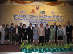 เมื่อวันที่ 14 กรกฎาคม 2553 เวลา 09.00 น. นายอนุกูล ตังคณานุกูลชัย รองผู้ว่าราชการจังหวัดขอนแก่น เป็นประธานและกล่าวต้อนรับผู้เข้าประชุมวิชาการนานาชาติลาวศึกษา The Third international conference on Lao Studies โดย ผศ.ดร.เยาวลักษณ์ อภิชาติวัลลภ ผอ.ศูนย์วิจัยพหุลักษณ์สังคมลุ่มน้ำโขง และคณบดีคณะมนุษย์ศาสตร์และสังคมศาสตร์ มหาวิทยาลัยขอนแก่น กล่าวรายงานเพื่อเป็นเวทีเผยแพร่องค์ความรู้ที่เกิดจากการวิจัยของนักวิจัย นักวิชาการ คณาจารย์ นักศึกษา เพื่อให้เกิดการเรียนรู้ร่วมกัน และการพัฒนาคุณภาพมาตรฐานงานวิจัยในประเด็นที่เกี่ยวเนื่องกัล Lao Studies มีผู้เข้าร่วมสัมมนาจากนักวิชาการ นักศึกษา นักวิจัย องค์กรพัฒนาเอกชน ทั้งไทยและต่างประเทศกว่า 300 คน ณ โรงแรมเจิรญธานีขอนแก่น