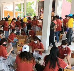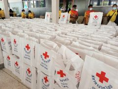 ผู้ว่าราชการจังหวัดขอนแก่น ให้กำลังใจอาสาสมัครที่ร่วมกันบรรจุถุงยังชีพเพื่อช่วยเหลือประชาชน