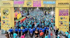 เมื่อวันที่ 28 มกราคม 2566 ณ บริเวณหน้าศูนย์ประชุมอเนกประสงค์กาญจนาภิเษก มหาวิทยาลัยขอนแก่น น.ส.ธนียา นัยพินิจ รองผู้ว่าราชการจังหวัดขอนแก่น พร้อมด้วย รศ.นพ.ชาญชัย พานทองวิริยะกุล อธิการบดีมหาวิทยาลัยขอนแก่น ร่วมกันเป็นประธานเปิดกิจกรรม FUNRUN เดินวิ่งขอนแก่นมาราธอน ระยะทาง 5.4 กิโลเมตร ซึ่งเป็นกิจกรรมภายใต้การแข่งขัน ขอนแก่นมาราธอนนานาชาติ ครั้งที่ 18 หรือ Khon Kaen International Marathon 2023 (KKIM2023)