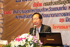 เมื่อวันที่ 23 มิถุนายน 2554 เวลา 09.15 น. นายธนวัฒน์ พลอยโสภณ รองผู้ว่าราชการจังหวัดขอนแก่น กล่าวต้อนรับ ดร.พสุ โลหารชุน อธิบดีกรมส่งเสริมอุตสาหกรรม ประธานเปิดการสัมมนา SMEs FORUM ครั้งที่ 11 "นับถอยหลัง 2015 รุกและรับประชาคมเศรษฐกิจอาเซียน" และผู้ร่วมสัมมนา โดย นางบุญเจือ วงษ์เกษม ผอ.สำนักพัฒนาผู้ประกอบการ กรมส่งเสริมอุตสาหกรรม กล่าวรายงานการสัมมนา โดยมีเป้าหมายนำอาเซียนไปสู่การตลาดและฐานการผลิตร่วมกัน ส่งผลต่อการเปลี่ยนแปลงทางเศรษฐกิจของประเทศในกลุ่มอาเซียน ก่อให้เกิดเสรีการค้าสินค้า การบริการ และการลงทุน การเคลื่อนย้ายเงินทุน และการเคลื่อนย้ายแรงงานฝีมืออย่างเสรี มีผู้เข้าร่วมสัมมนากว่า 250 คน ณ โรงแรมเจริญธานีขอนแก่น